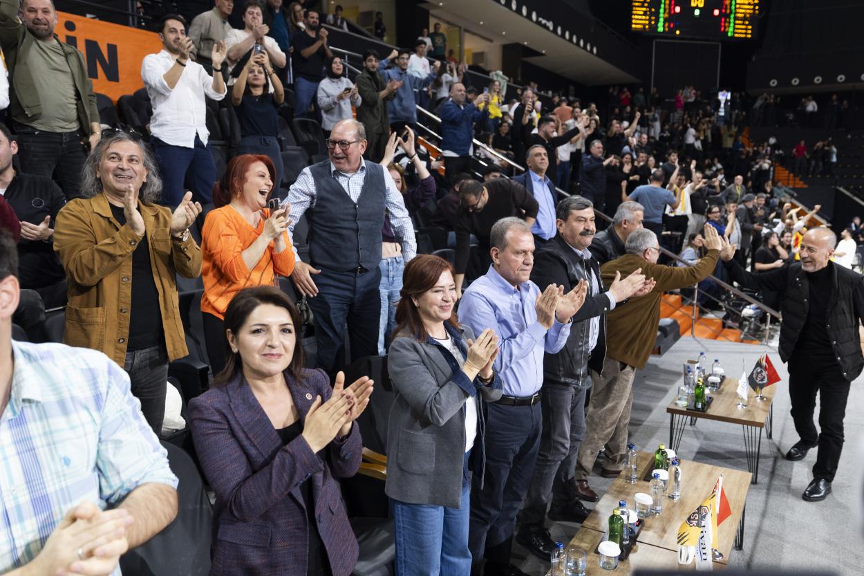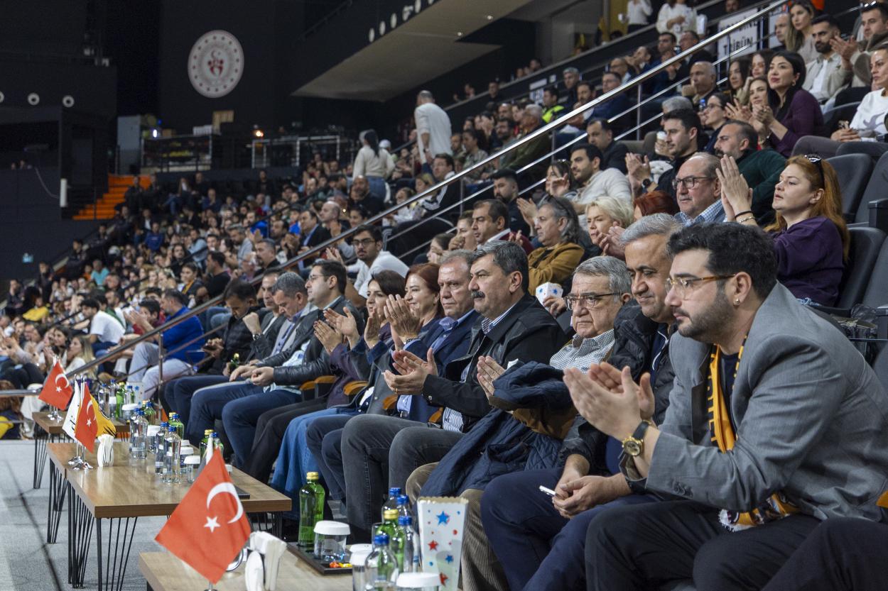Servet Tazegül Spor Salonu’nda oynanan karşılaşmayı; Başkan Seçer ile Meral Seçer, Toroslar Belediye Başkanı Abdurrahman Yıldız, Cumhuriyet Halk Partisi (CHP) Mersin Milletvekili Gülcan Kış, Mersin Gençlik ve Spor İl Müdürü Göksun Öz, Mezitli Kaymakamı Turgay Gülenç, Mersin Ticaret Borsası Yönetim Kurulu Başkanı Abdullah Özdemir, Mersin Ticaret Borsası Meclis Başkanı Münir Şen, MSK Başkanı Berkay Üstündağ, Meclis üyeleri, Mersin Büyükşehir Belediyesi ve MESKİ bürokratları ile çok sayıda seyirci izledi.