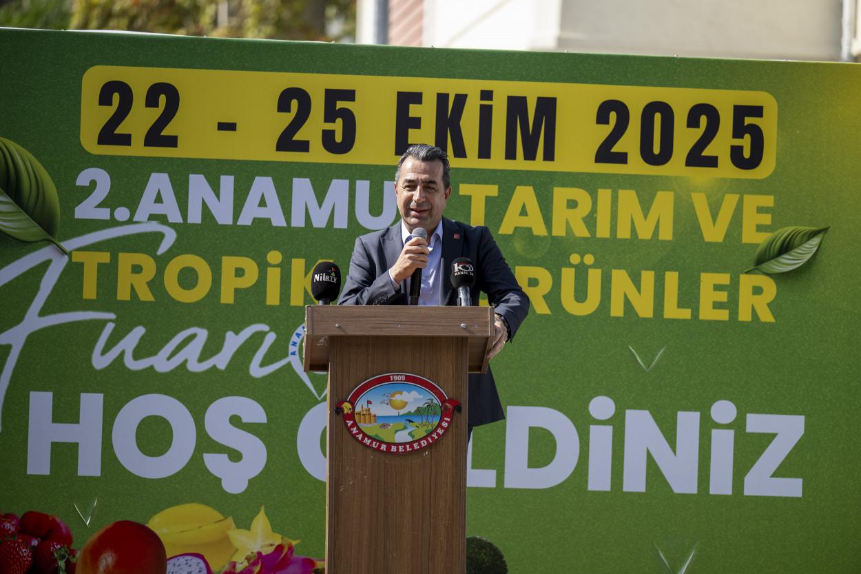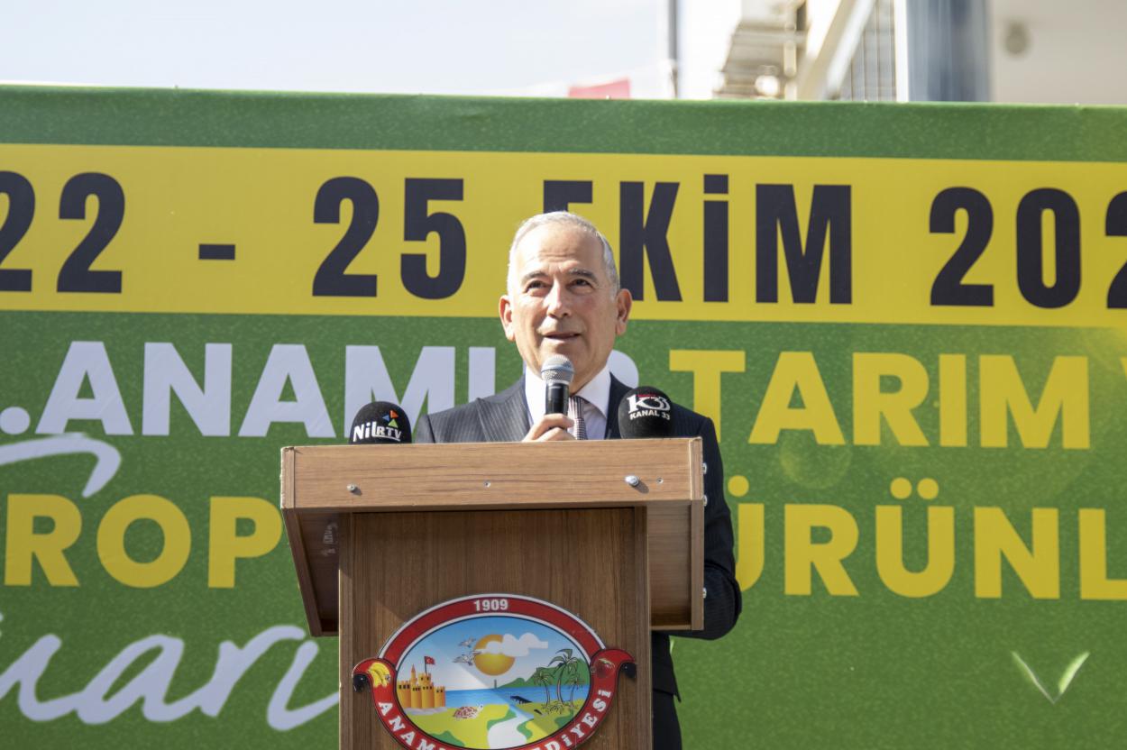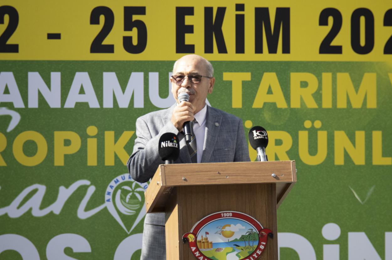 Anamur Belediye Başkanı Durmuş Deniz ise Anamur’da muz başta olmak üzere çilek, avokado, mango, ejder meyvesi, passiflora gibi 40’a yakın tropikal ürünün yetiştirilmekte olduğunu belirtti. Bu sayede üretime ve Türkiye ekonomisine yüksek miktarda katkı sunduklarından bahseden Deniz, “Tarımsal üretimde emeğin ve alın terinin bu kadar yoğun olduğu bir kentte tarım fuarı düzenlemek, bir görev olmanın yanı sıra bu topraklara duyduğumuz vefanın bir karşılığıdır. Bu kentte ticari faaliyetler yoğun olarak devam ediyorsa, refah seviyemiz yüksekse, birçok il ve ilçeye göre daha zengin bir kentte yaşıyorsak bunun başlıca sebebi özellikle kadınların çok çalışkan olması ve çalışkan insanların ilçemizde tarımsal üretimi çok iyi bir seviyede yönetmesidir” dedi.
