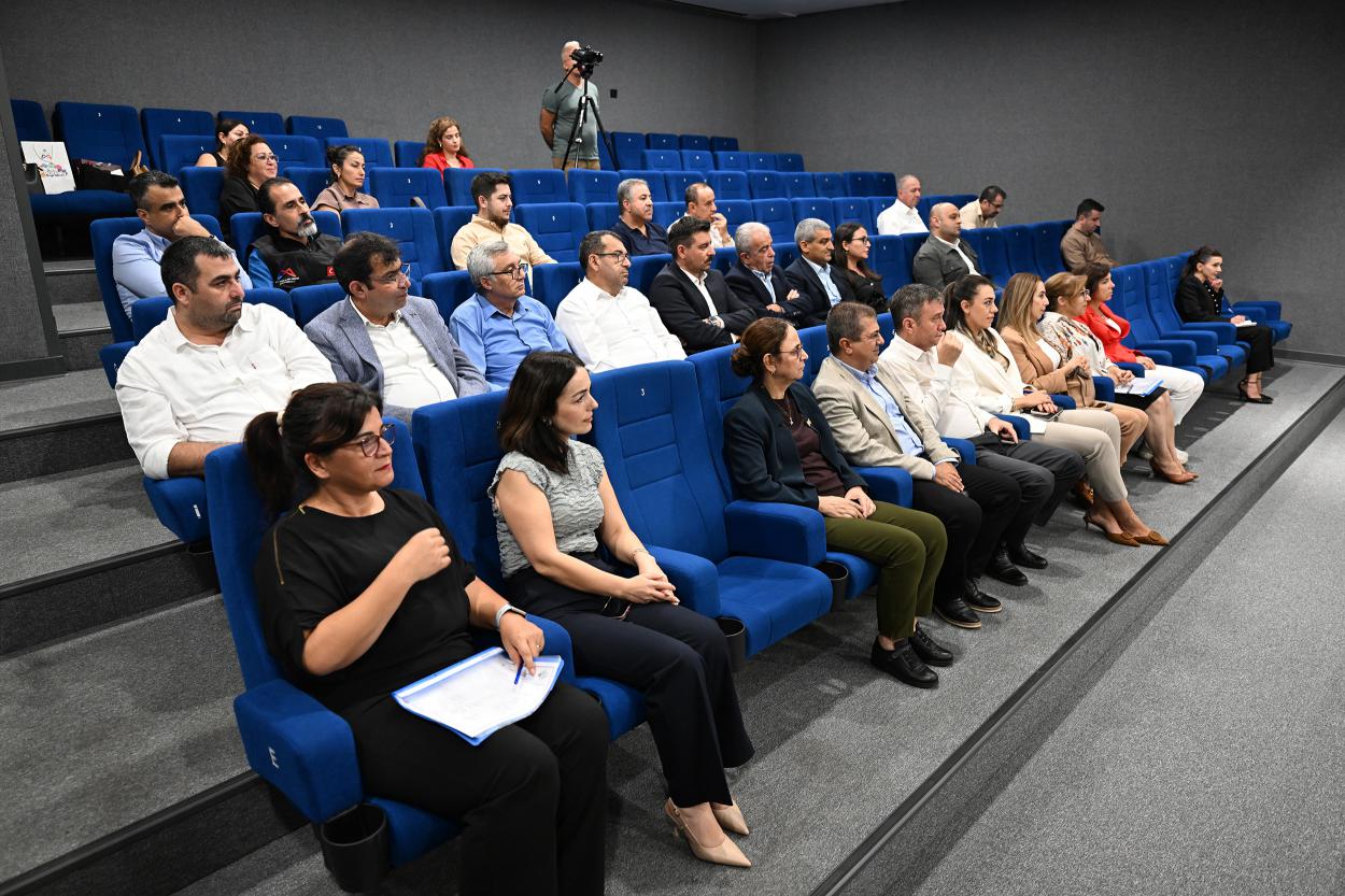 Mersin Büyükşehir Belediyesi Konferans Salonu’nda gerçekleşen toplantıya; Mersin Büyükşehir Belediyesi Genel Sekreter Yardımcıları Ali Rıza Özdemir ile Serdal Gökayaz, TSE Baş Tetkik Görevlisi Gökçen Bircan Değerliyurt, TSE Tetkik Görevlileri Sancar Arık ve Mustafa Yörük, Büyükşehir Belediyesi daire başkanları ve şube müdürleri katıldı.
