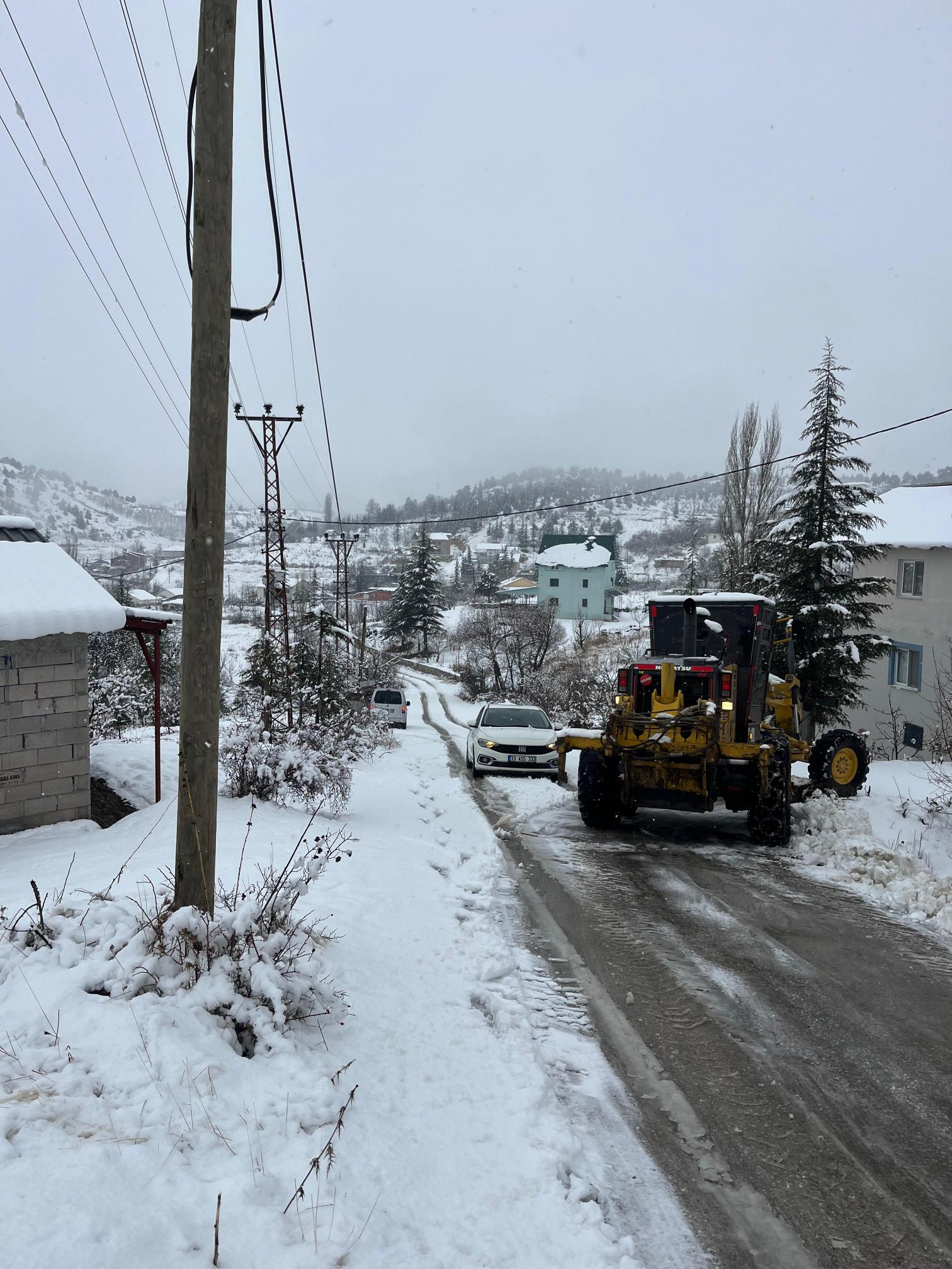 Ulaşımın aksamaması için sahada yoğun bir çalışma yürüten Büyükşehir ekipleri, özellikle kırsal mahalleler ve bağlantı yollarında kar küreme ve yol açma çalışmalarını aralıksız olarak devam ettiriyor.