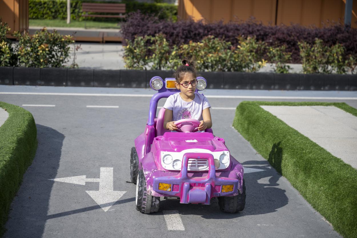 Çocuklardan Emin Yağız Kaplan, “Trafik Park’ta araba sürüyorum. Burada hem trafik kurallarını öğreniyor hem de eğleniyoruz” diye konuştu.