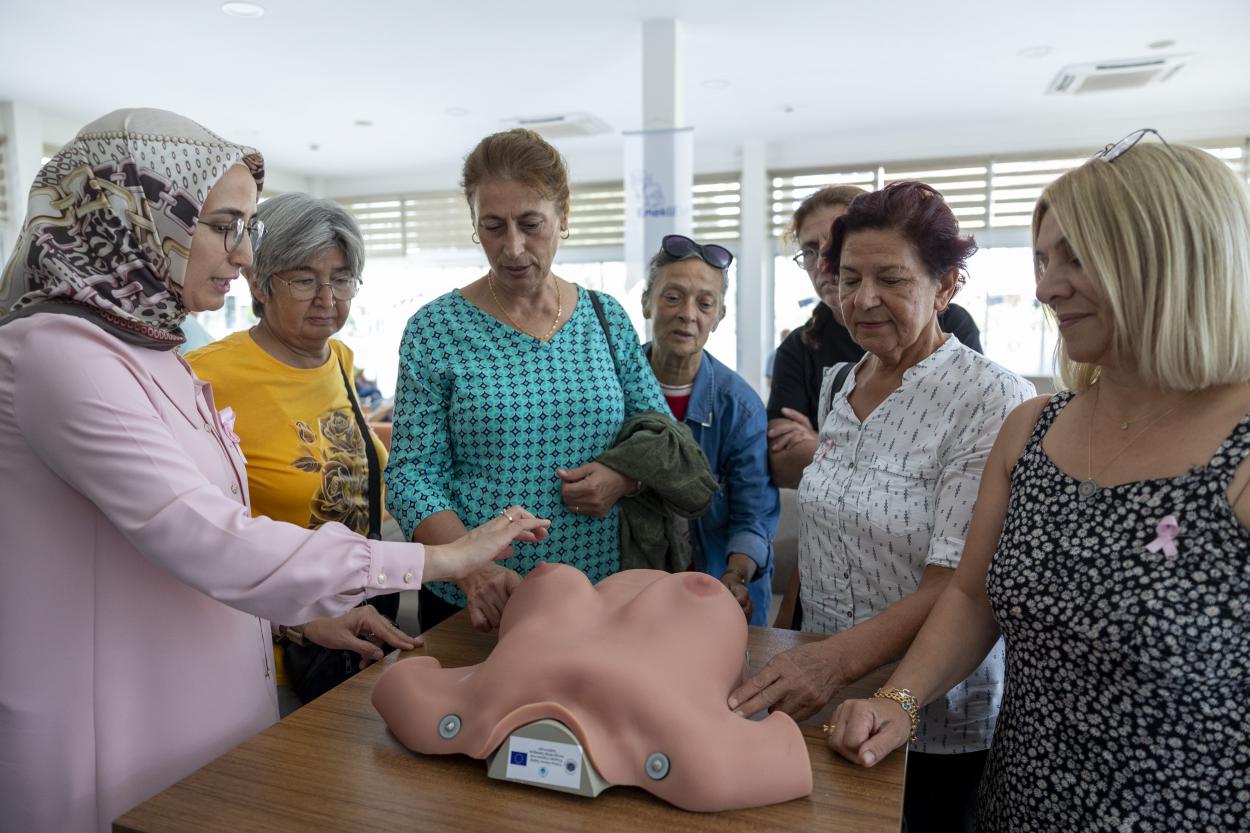 Eğitim, Mersin Üniversitesi Hemşirelik Fakültesi Öğretim Üyesi Prof. Dr. Gülay Altun Uğraş tarafından verildi. Etkinlikte, meme kanserinin ne olduğu, risk faktörleri, evde erken tanı için yapılabilecek kontroller ve düzenli muayenenin önemi anlatıldı. Prof. Dr. Uğraş, katılımcılara meme muayenesinin nasıl yapılacağını uygulamalı olarak gösterdi. Gerçekleştirilen sunumda, meme maketi üzerinde örneklemeli anlatım yapılarak kadınların kendi kendine muayene yöntemlerini doğru şekilde öğrenmeleri sağlandı.