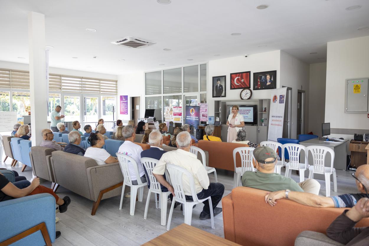 Mersin Büyükşehir Belediyesi, her yıl Ekim ayında düzenlenen “Meme Kanseri Farkındalık Ayı” kapsamında kent genelinde çeşitli bilgilendirici etkinlikler düzenlemeye devam ediyor. Bu kapsamda, Büyükşehir Belediyesi Sosyal Hizmetler Dairesi Başkanlığı bünyesinde hizmet veren Yenişehir Emekli Evi üyelerine yönelik farkındalık ve eğitim etkinliği gerçekleştirildi.