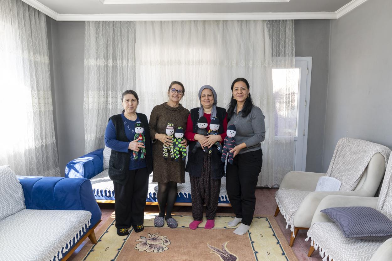 Mersin’in dezavantajlı mahallelerinde yaşayan kadınlar, proje sayesinde evlerinde ekonomik kazançlarını elde etme imkânı bulurken; günlük yaşamın sürdüğü evler, artık aynı zamanda birer atölye kimliği taşıyor. Proje kapsamında verilen eğitimlerin ardından kadınlar, ev ortamlarında çoraptan oyuncaklar yapıyor. Renkli çoraplar; iğne, iplik ve el emeğiyle birleşerek birbirinden sevimli oyuncaklara dönüşüyor. Kadın emeğini ekonomik güce dönüştüren proje ile ev merkezli üretim modeli, özellikle çalışma hayatına katılmakta zorlanan kadınlar için önemli bir fırsat sunuyor. ‘Evimiz Atölye’ ile Mersin’de evler artık emeğin, üretimin ve kadın dayanışmasının mekânı haline gelirken, kadınlar kendi evlerinde hayallerini ve umutlarını da geleceğe taşıyor.