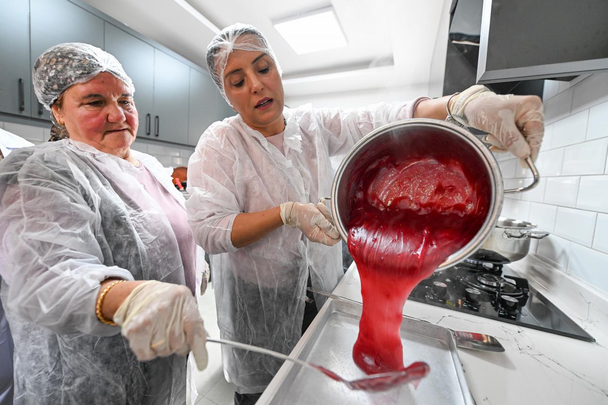 Mersin Büyükşehir Belediyesi ‘Hamzabeyli Köyümüz Atölye Yerleşkesi’nde, coğrafi işaret tescilli Mersin Kan Portakalı ile geleneksel bir lezzet olan Türk lokumu buluşturuldu ve kadın emeği ile enfes bir tat sunuldu.