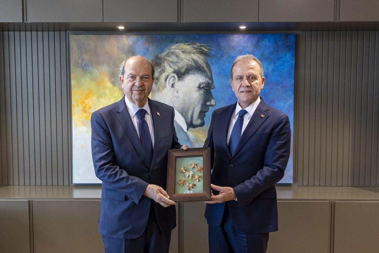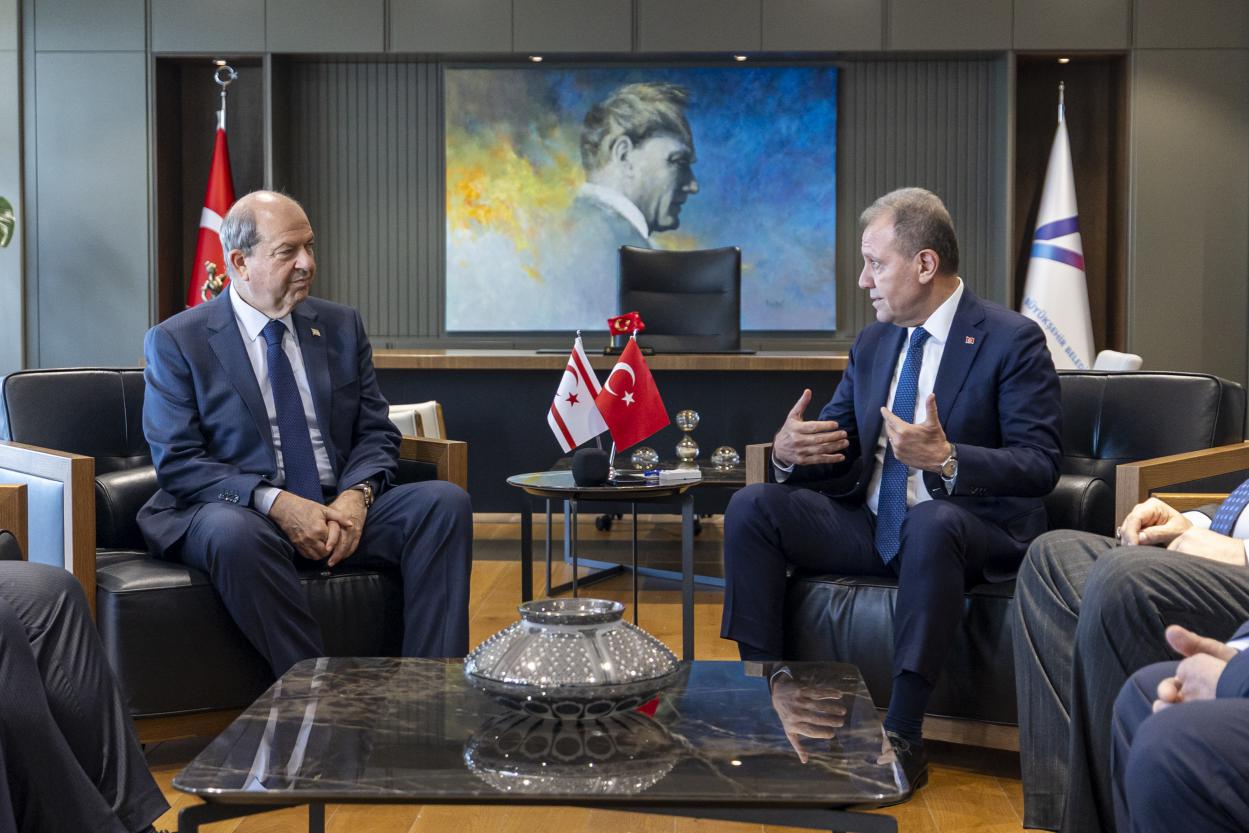 Bir dizi ziyaret için Mersin’e gelen Kuzey Kıbrıs Türk Cumhuriyeti’nin (KKTC) 5. Cumhurbaşkanı Ersin Tatar ve beraberindeki heyet, Türkiye Belediyeler Birliği (TBB) Başkan Vekili ve Mersin Büyükşehir Belediye Başkanı Vahap Seçer’i ziyaret etti.