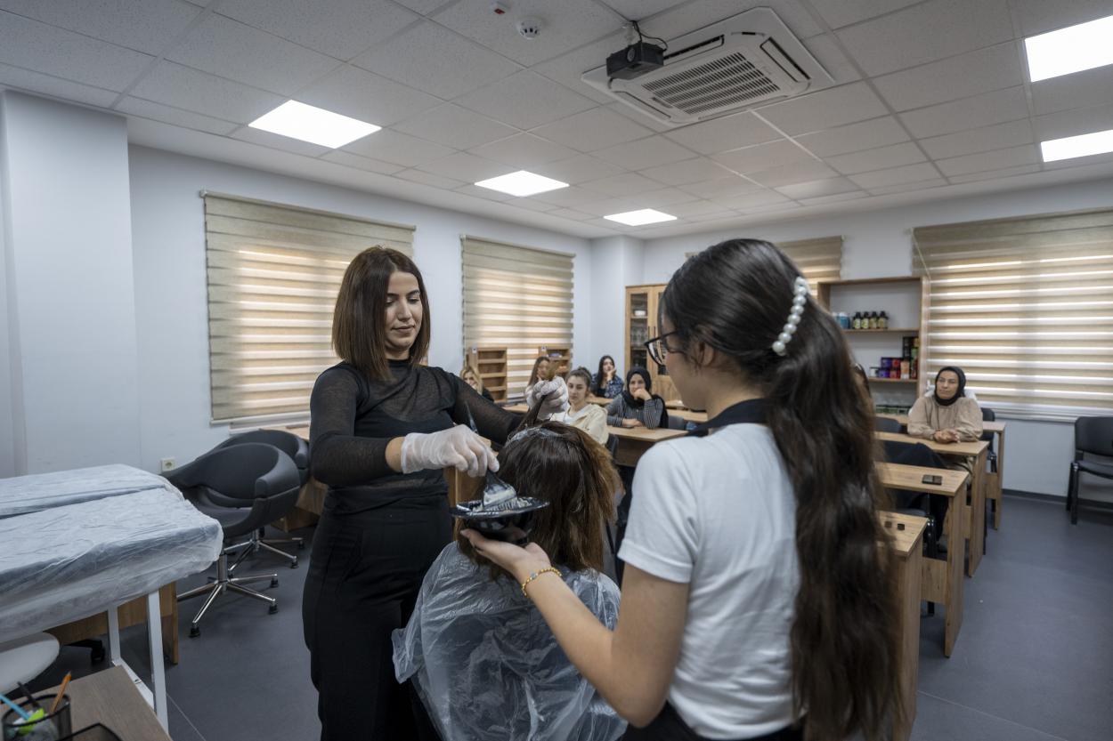 Mersin Büyükşehir Belediyesi Sosyal Hizmetler Dairesi Başkanlığı bünyesinde hizmet veren Halkkent MERCEK Mesleki Eğitim Merkezi, vatandaşlara mesleki eğitimleri ücretsiz sunmaya devam ediyor. Bunlardan biri olan ve yoğun ilgi gören ‘Saç Renklendirme’ kursu, katılımcılara hem mesleki yeterlilik kazandırıyor hem de kişisel gelişimlerine katkı sağlıyor.