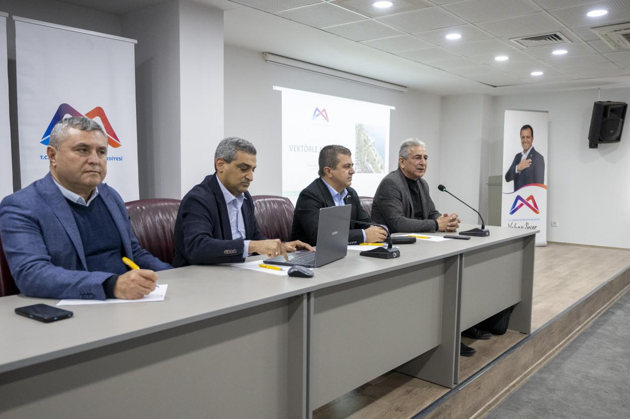 Çevre Koruma ve Kontrol Dairesi Başkanı Dr. Bülent Halisdemir’in kapsamlı bir sunum yaptığı toplantıda, Mersin genelinde yürütülen vektörel mücadele çalışmaları hakkında önemli bilgiler paylaşıldı. Kentin coğrafi yapısı, yüksek nem oranı ve tarımsal üretim yoğunluğu nedeniyle, özellikle sivrisinek başta olmak üzere haşerelerin kolaylıkla üreyebildiğine dikkat çekildi. Bu nedenle mücadelenin yalnızca ilaçlama ile değil; kültürel, fiziksel ve biyolojik yöntemlerle kaynağında yapılmasının önemine vurgu yapıldı.