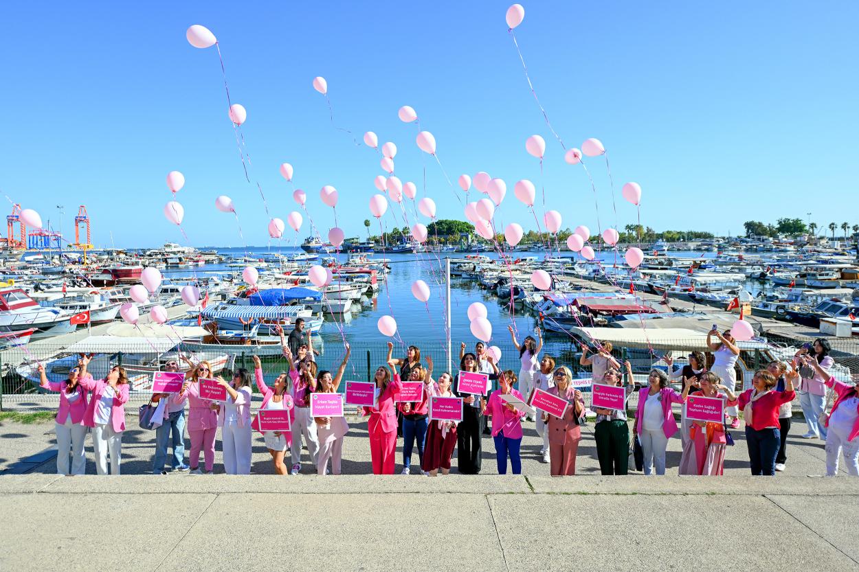 Etkinlik sonunda katılımcılar farkındalığı tüm kente yaymak adına ellerinde bulunan pembe balonları gökyüzüne bıraktı.
