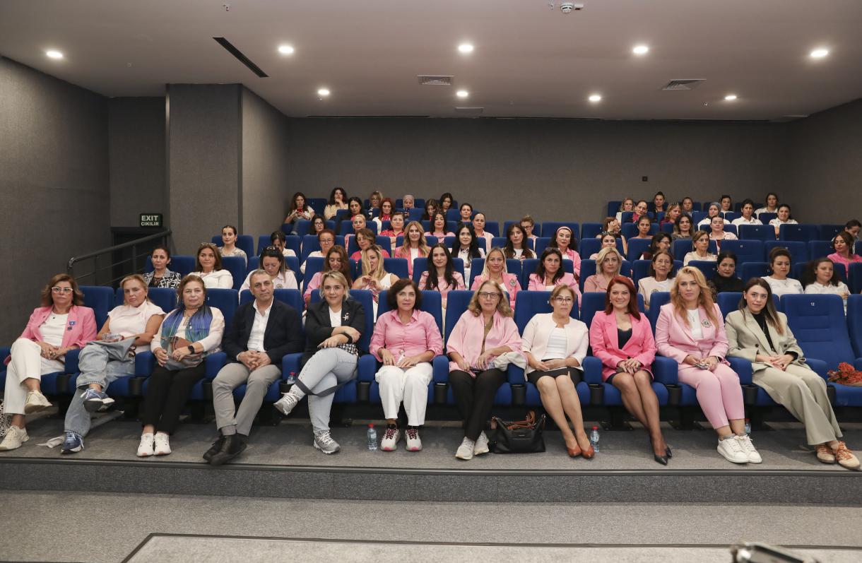 Mersin Büyükşehir Belediyesi’nde görev yapan Kadın Daire Başkanlarının da katıldığı ve Büyükşehir personeline yönelik düzenlenen farkındalık etkinliğinde; Kadın Doğum ve Hastalıkları Uzman Dr. Aslı Bilekdemir ile Kadın Doğum ve Hastalıkları Uzman Opr. Dr. Erdal Özmen sunum yaptı. Meme kanserine karşı alınacak önlemler, teşhis, risk faktörleri ve erken teşhisin önemi katılımcılara anlatıldı. Sağlık yaşam alışkanlıklarının hastalığı önlemedeki en etkili yöntem olduğunu belirten doktorlar, erken teşhis için elle muayenenin önemine dikkat çekti.