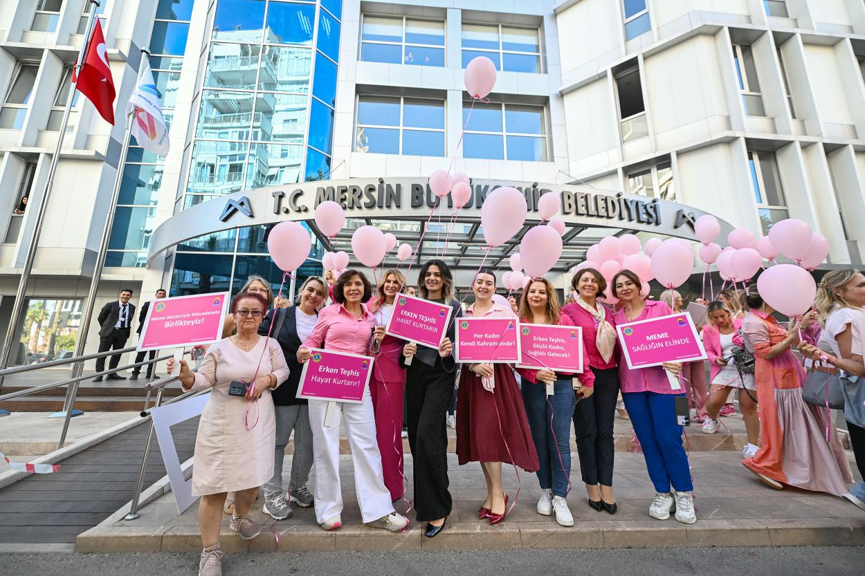 Kadın sağlığı konusunda farkındalık yaratmak ve kadınları bilinçlendirmek için çalışmalar yürüten Mersin Büyükşehir Belediyesi, her yılın Ekim ayında kutlanan “Meme Kanseri Farkındalık Ayı” kapsamında bir dizi etkinlik düzenlemeye devam ediyor. Sağlık İşleri Dairesi Başkanlığı öncülüğünde; Çamlıbel Lions, Tarsus Anıt Lions ve Mersin Kilikya Lions Kulübü ortaklığında Mersin Büyükşehir Belediyesi Ana Hizmet Binası’nda bulunan Büyükşehir çalışanlarına ‘Meme Kanseri Farkındalık Etkinliği’ düzenledi.