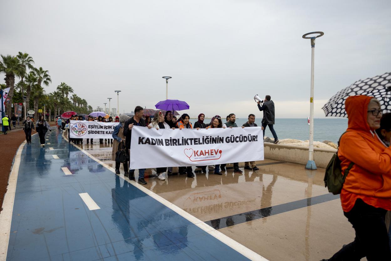Şiddet mağduru olan kadınların yanında dik durmak için yürüyüşe katıldığını belirten Rahime Fırat Gedik, “Yasalar yeterince uygulanmadığı için bir mağduriyet var. Başkanımız Vahap Seçer’in kadınlara öncelik tanıması bizim için büyük bir değer. Çok teşekkür ederiz. Hiçbir zaman mücadelemiz bitmeyecek” dedi. Hava muhalefetine rağmen çok sayıda kadının bir arada olduğunu belirten Gedik, “Öldürülen kadınlar içimizi sızlatırken, hava durumunu düşünecek durumda değiliz. İnsana dokunan her şeyde varız. Evrensel insan haklarına dayanarak haklarımızı korumak ve müdafaa etmek zorundayız” ifadelerine yer verdi.