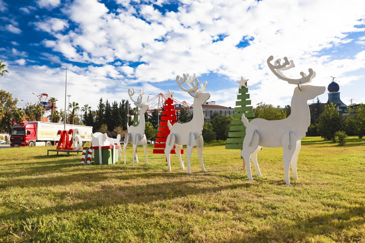Yeni yıl temalı süslemelerde çam ağaçları, geyik figürleri ve hediye paketleri gibi birçok objenin kullanıldığını aktaran Arkan, “Yeni yıl temalı süsleme objeleri Park ve Bahçeler Dairesi Başkanlığı’na bağlı atölyelerde, kendi ustalarımız tarafından üretildi. Kullanılan malzemelerin büyük bölümü, daha önce farklı amaçlarla kullanılan ve ekonomik ömrünü tamamlamış ürünlerden oluşuyor. Bu malzemeleri marangoz ve kaynak atölyelerimizde geri dönüşüm kapsamında yeniden değerlendiriyor, boyayarak yeni bir görünüme kavuşturuyoruz” dedi.
