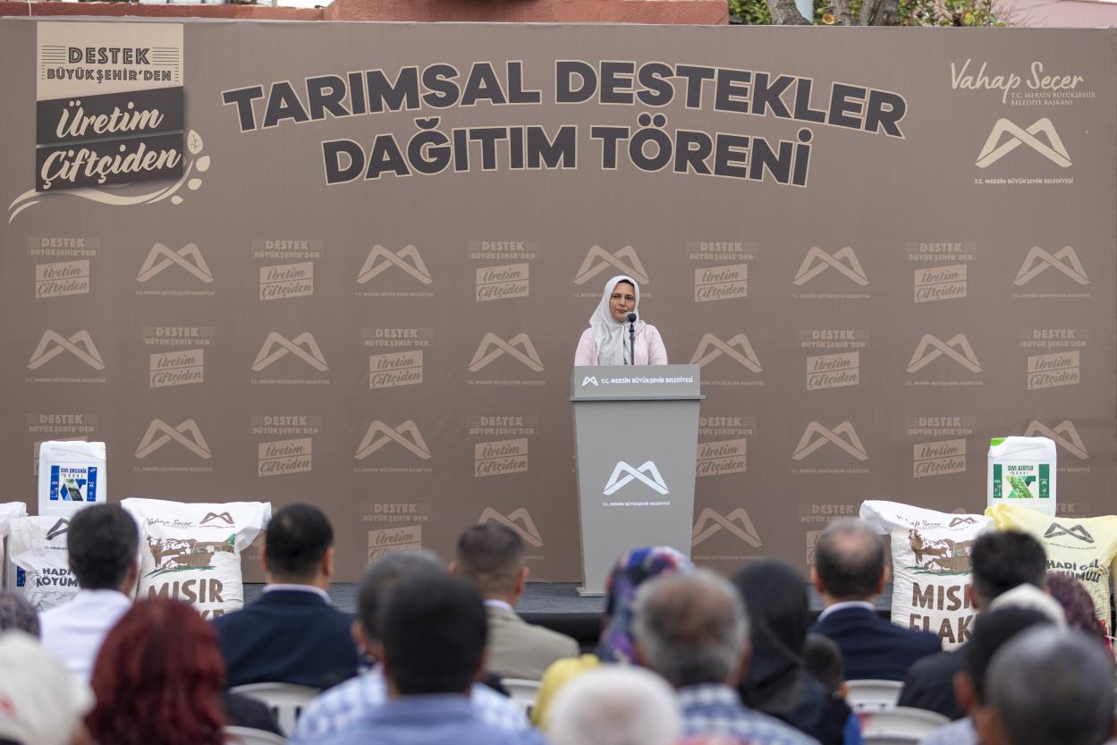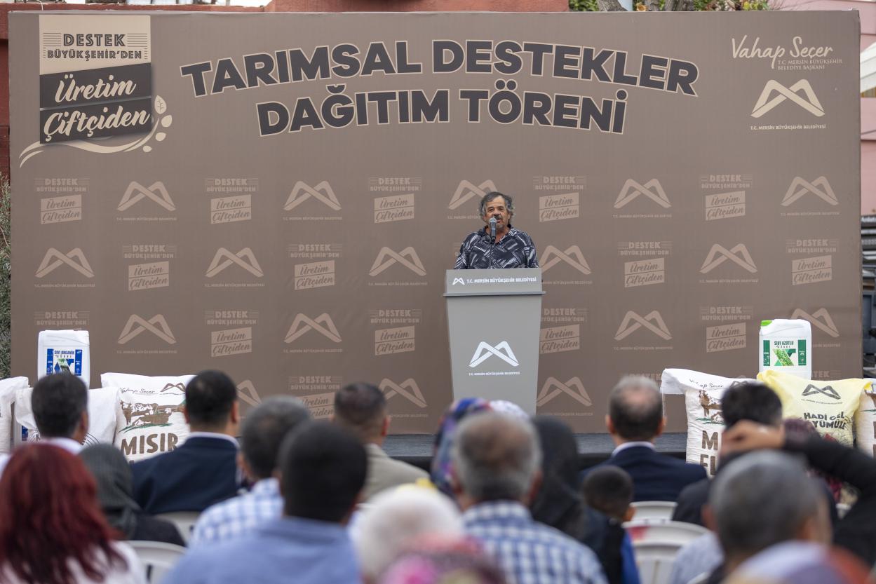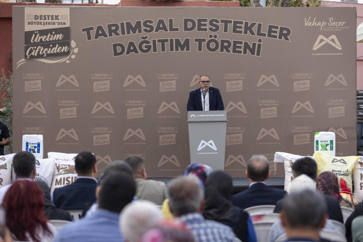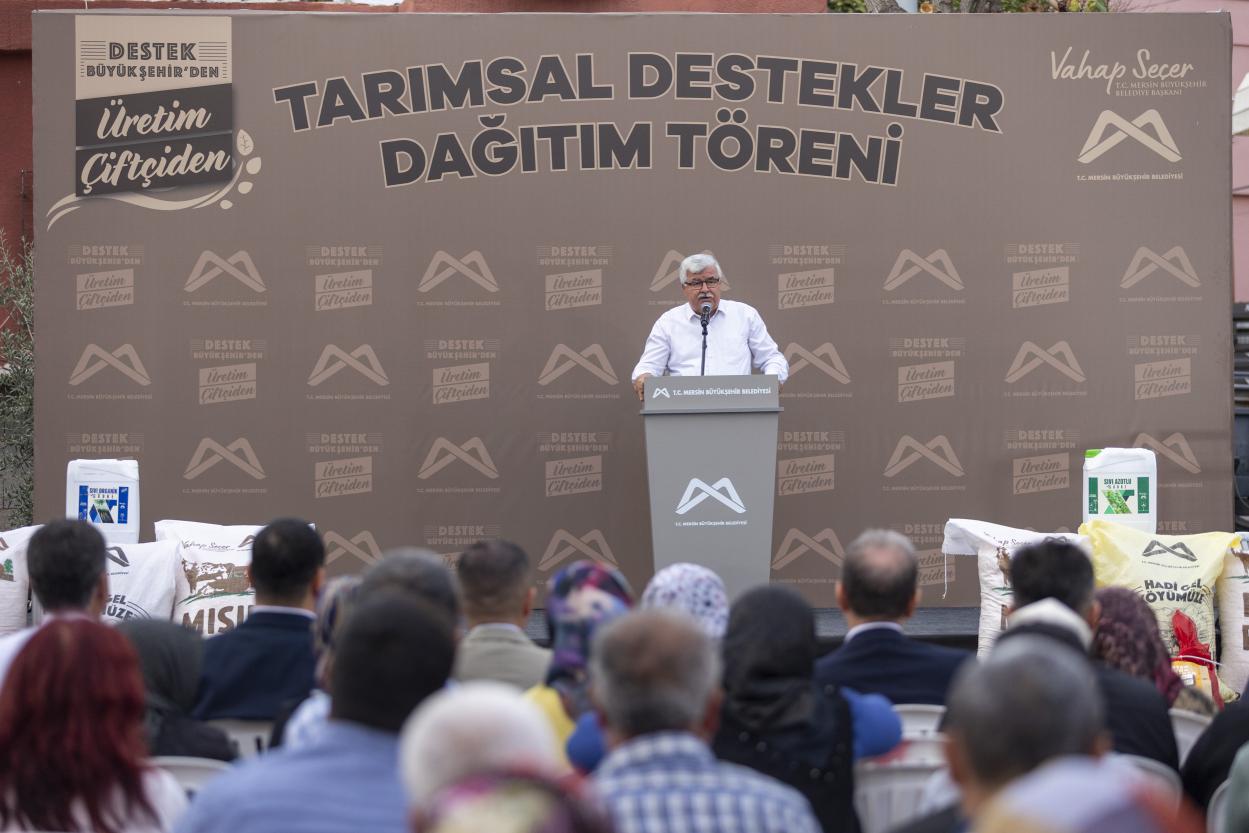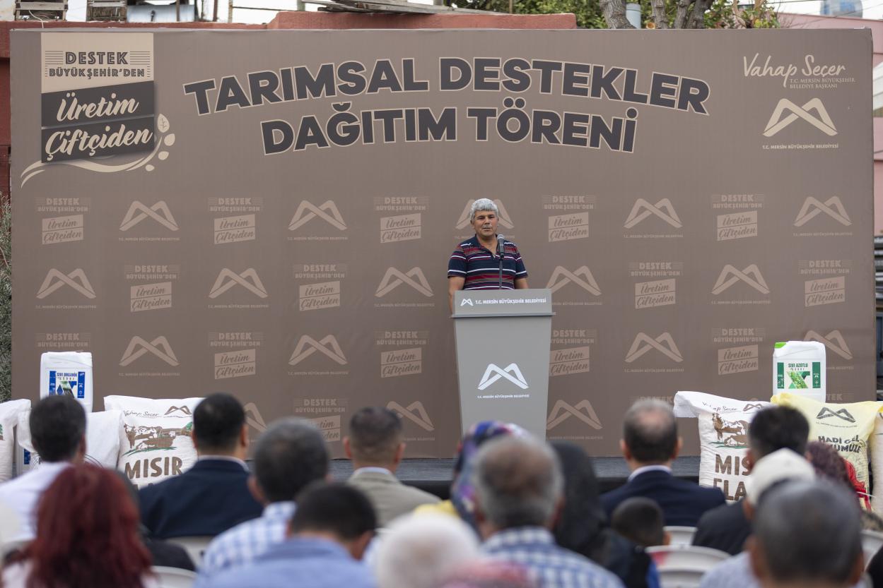 Türkiye Belediyeler Birliği (TBB) Başkan Vekili ve Mersin Büyükşehir Belediye Başkanı Vahap Seçer, Mersin Büyükşehir Belediyesi tarafından ‘Destek Büyükşehir’den Üretim Çiftçiden’ sloganı ile düzenlenen, ‘Küçükbaş Hayvan, Yem, Nergis Soğanı, Mısır Flake, Sıvı Gübre ve Güneş Paneli Dağıtım Töreni’ne katıldı. Tarımsal Hizmetler Dairesi Başkanlığı tarafından; Akdeniz, Toroslar, Yenişehir, Mezitli, Tarsus ve Çamlıyayla ilçeleri kapsamında Eski Mezitli Mahalle Muhtarlığı önünde düzenlenen törende üretimin kalbini attıran 1427 üretici ve yetiştirici, Büyükşehir’in sağlamış olduğu tarımsal desteklerden faydalandı.