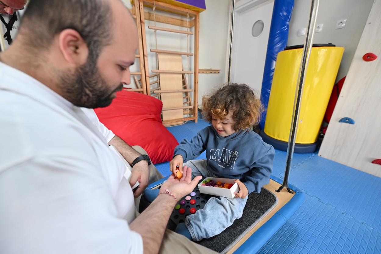 Mersin Büyükşehir Belediyesi Sağlık İşleri Dairesi Başkanlığı bünyesinde faaliyet gösteren Otizm Aile Danışma Merkezi, 0-7 yaş aralığındaki tanılı çocuklara yönelik destek hizmetlerini sürdürmeye devam ediyor. Merkezde serebral palsi, otizm, down sendromu, gelişimsel gerilikler ve çeşitli genetik mutasyonlara sahip çocuklara ergoterapi, duyu bütünleme ve özel eğitim hizmetleri sunulurken, Duchenne Musküler Distrofi (DMD) hastası 3,5 yaşındaki Koray Özmen de bu destekten faydalanan çocuklar arasında yer alıyor.