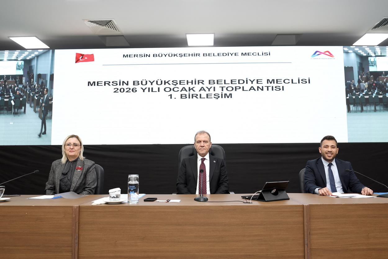 Mersin Büyükşehir Belediye Meclisi’nin 2026 Yılı Ocak Ayı Olağan Toplantısı 1. Birleşimi, Türkiye Belediyeler Birliği (TBB) Başkan Vekili ve Mersin Büyükşehir Belediye Başkanı Vahap Seçer başkanlığında gerçekleştirildi. Kongre ve Sergi Sarayı Çok Amaçlı Salon’da düzenlenen Meclis Toplantısı’nda Birimlerden Gelen 37, Komisyonlara Havale Edilen 19 ve Gündem Dışı 1 olmak üzere toplam 57 madde görüşüldü.