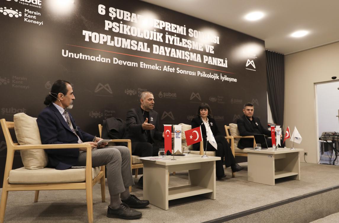 Mersin Büyükşehir Belediyesi Afet İşleri ve Risk Yönetimi Dairesi Başkanlığı, Mersin Kent Konseyi, 6 Şubat Yaşam Derneği ve İl Afet ve Acil Durum Müdürlüğü (AFAD) iş birliğinde, 6 Şubat depremlerinin ardından yaşanan psikolojik etkiler ve iyileşme sürecinin ele alındığı “Unutmadan Devam Etmek: Afet Sonrası Psikolojik İyileşme ve Toplumsal Dayanışma” başlıklı panel gerçekleştirildi. Panel ile 6 Şubat depremlerinden doğrudan ya da dolaylı olarak etkilenen vatandaşlara rehberlik etme, psikososyal destek konusunda farkındalık yaratma ve toplumsal dayanışma bilincinin artırılması amaçlandı.
