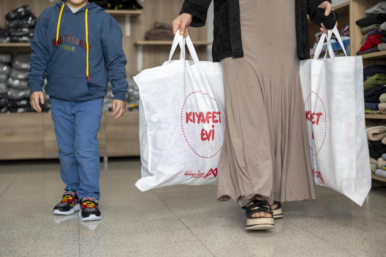 Sosyal güvencesi bulunmayan ve dar gelirli ailelerin 0-12 yaş arası çocuklarına yönelik hizmet veren Kıyafet Evleri, mağaza konseptiyle hizmet sunuyor. Aileler, çocuklarıyla birlikte raflardaki ürünler arasından diledikleri kıyafetleri seçerek bayram hazırlıklarını tamamlıyor. 2020 yılından bu yana 24 bin çocuğun yararlandığı hizmet kapsamında çocuklara ayakkabı, mont, alt ve üst giyim ile iç giyim gibi birçok ürün ücretsiz olarak sunuluyor.