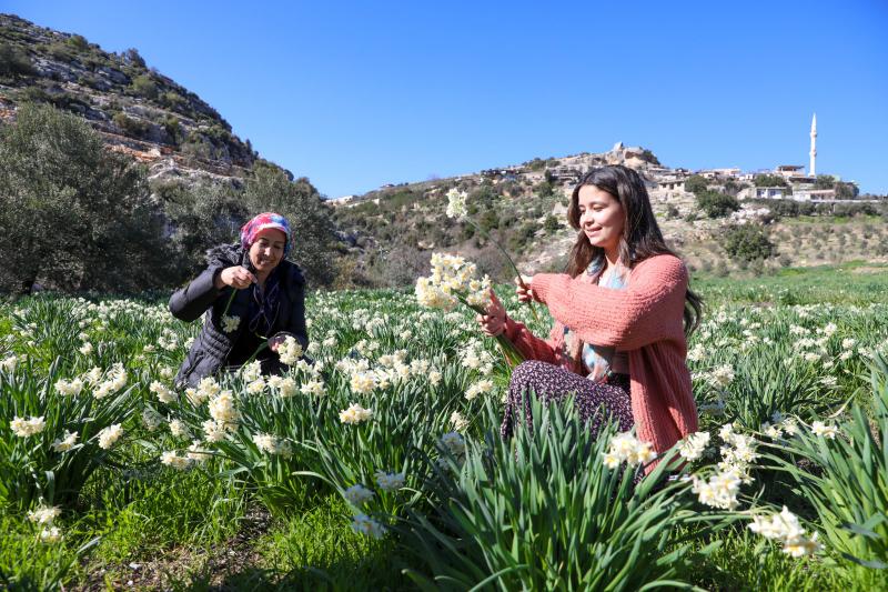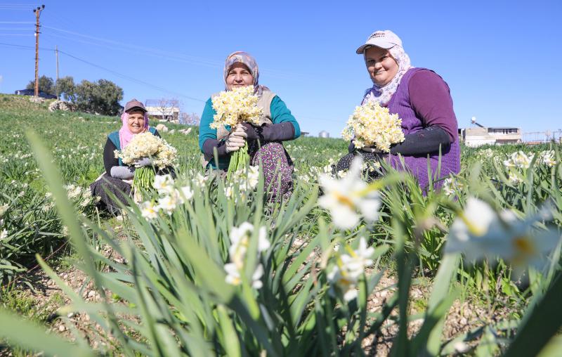 Mersin Büyükşehir Belediyesi’nin kırsal kalkınmayı önceleyen örnek projeleri, üreticinin yüzünü güldürmeye ve aile ekonomilerine destek olmaya devam ediyor. Tarımsal Hizmetler Dairesi Başkanlığı tarafından bu kapsamda yürütülen ‘Nergis Soğanı Dağıtım Projesi’nden faydalanan üreticiler, mis kokulu nergis çiçeklerini hasat ediyorlar. Tarsus’a bağlı Kaklıktaşı Mahallesi’nde ekilen soğanlardan çıkan nergisler; kadınlar tarafından toplanıyor, demetleniyor ve yurdun dört bir tarafına ulaştırılıyor.