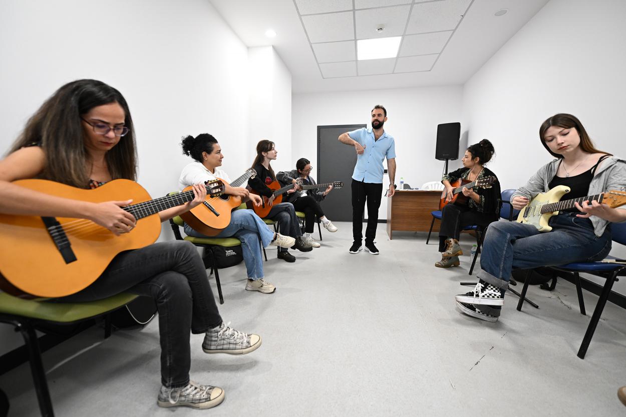 Mersin Büyükşehir Belediyesi Kültür ve Sosyal İşler Dairesi Başkanlığı tarafından düzenlenen ücretsiz enstrüman kursları ile vatandaşların sanatsal gelişimine katkı sunmak amacıyla bağlama, gitar, keman ve piyano eğitimleri veriliyor. Mersin Büyükşehir Belediyesi Türk Müziği Orkestrası Şefi Erman Talşık, kursların 15 ile 50 yaş arası tüm vatandaşlara açık olduğunu belirterek, “Kurslarımız ücretsiz olarak veriliyor ve özellikle gençler tarafından büyük ilgi görüyor. Alanında uzman eğitmenlerimizle haftanın Salı günleri 17.00–19.00 saatleri arasında eğitimlerimizi sürdürüyoruz” dedi.