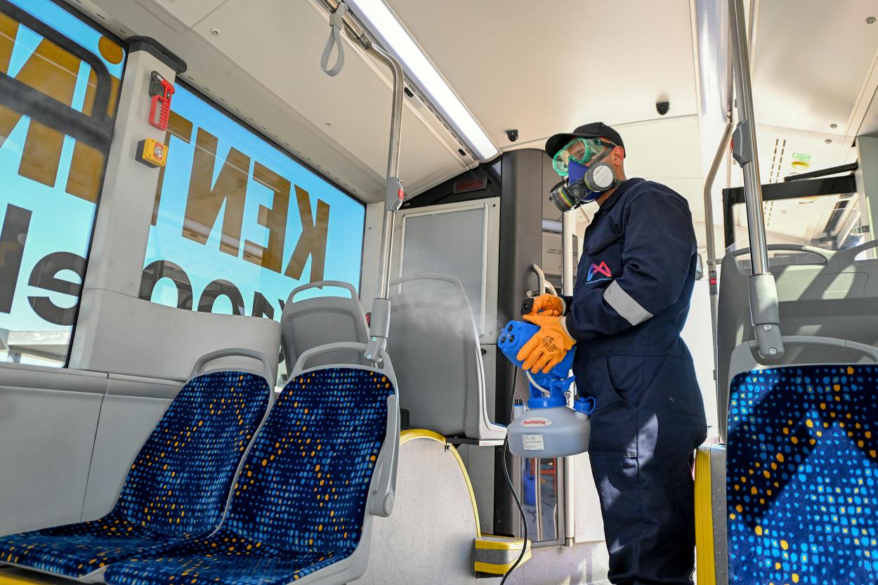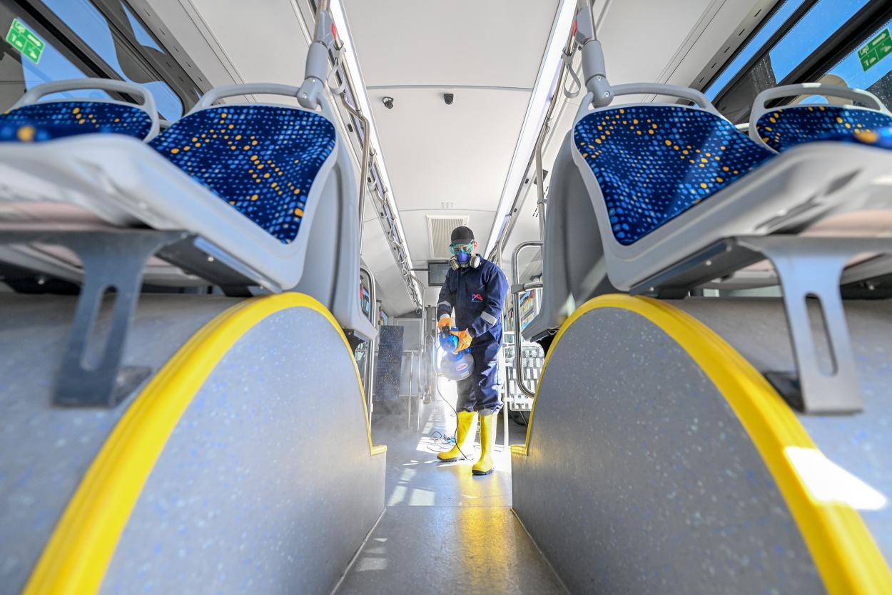 Mersin Büyükşehir, toplu taşımanın kalabalık nüfusların bir arada bulunduğu alanlar olması nedeniyle hijyen ve güvenlik konularına büyük önem veriyor. Bu kapsamda; sabah saat 06.00’dan gece 02.00’ye kadar hizmet veren toplu taşıma araçları, sefer öncesinde kapsamlı bir temizlik ve dezenfekte sürecinden geçiyor. Otobüsler sefere çıkmadan önce Büyükşehir’in Toplu Taşıma Yerleşkesi’nde bulunan yıkama bölümünde dış yıkamadan geçiriliyor. Ardından araçların iç kısmında; koltuklar, tutunma barları ve yolcuların temas ettiği tüm yüzeyler titizlikle siliniyor. Temizlik işlemlerinin ardından T.C. Sağlık Bakanlığı onaylı biyosidal ürünlerle araçların tamamında dezenfeksiyon çalışması yapılıyor. Mersin Büyükşehir böylece, toplu taşıma araçlarında oluşabilecek salgın ve bulaşıcı hastalık riskini en aza indirmeyi hedefliyor.