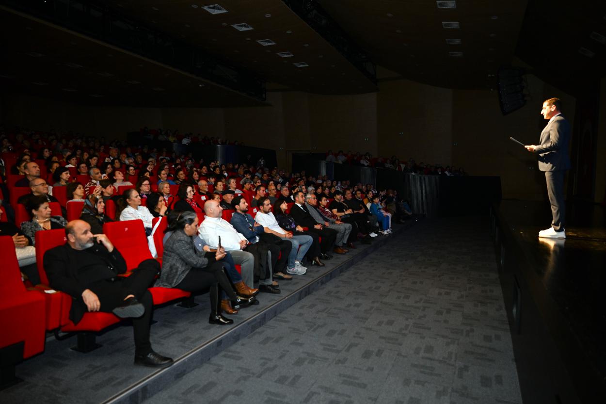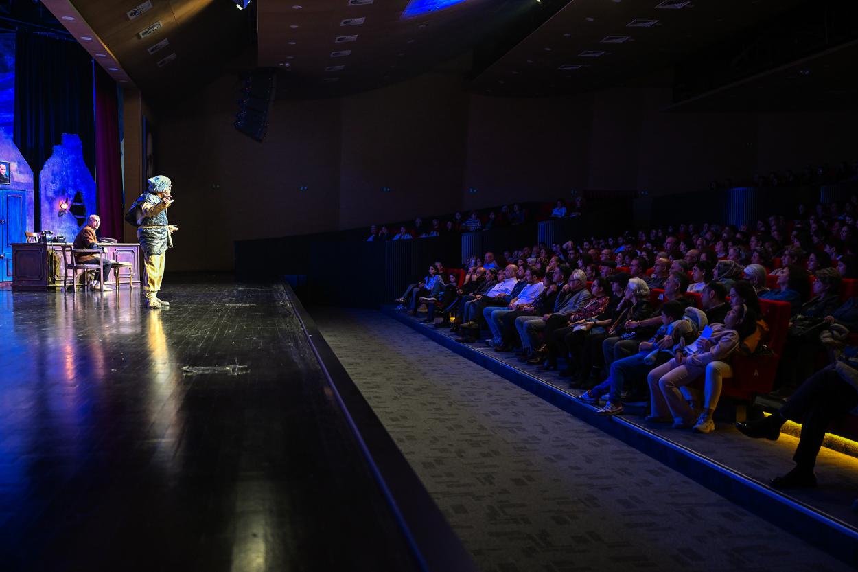 Gelen seyirciler ile “27 Mart Dünya Tiyatro Günü Bildirisi”ni paylaşan Mersin Büyükşehir Belediyesi Şehir Tiyatrosu Genel Sanat Yönetmeni Ozan Erdönmez, şu sözlere yer verdi;