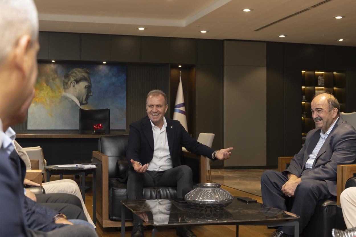 Mersin’in farklı ilçelerinde görev yapan mahalle muhtarları ve muhtar derneklerinin başkanları ile yöneticileri: yaklaşan ‘19 Ekim Muhtarlar Günü’ dolayısıyla Türkiye Belediyeler Birliği (TBB) Başkan Vekili ve Mersin Büyükşehir Belediye Başkanı Vahap Seçer’i ziyaret etti. Ziyarette; Mezitli Belediye Başkanı Ahmet Serkan Tuncer de yer aldı.