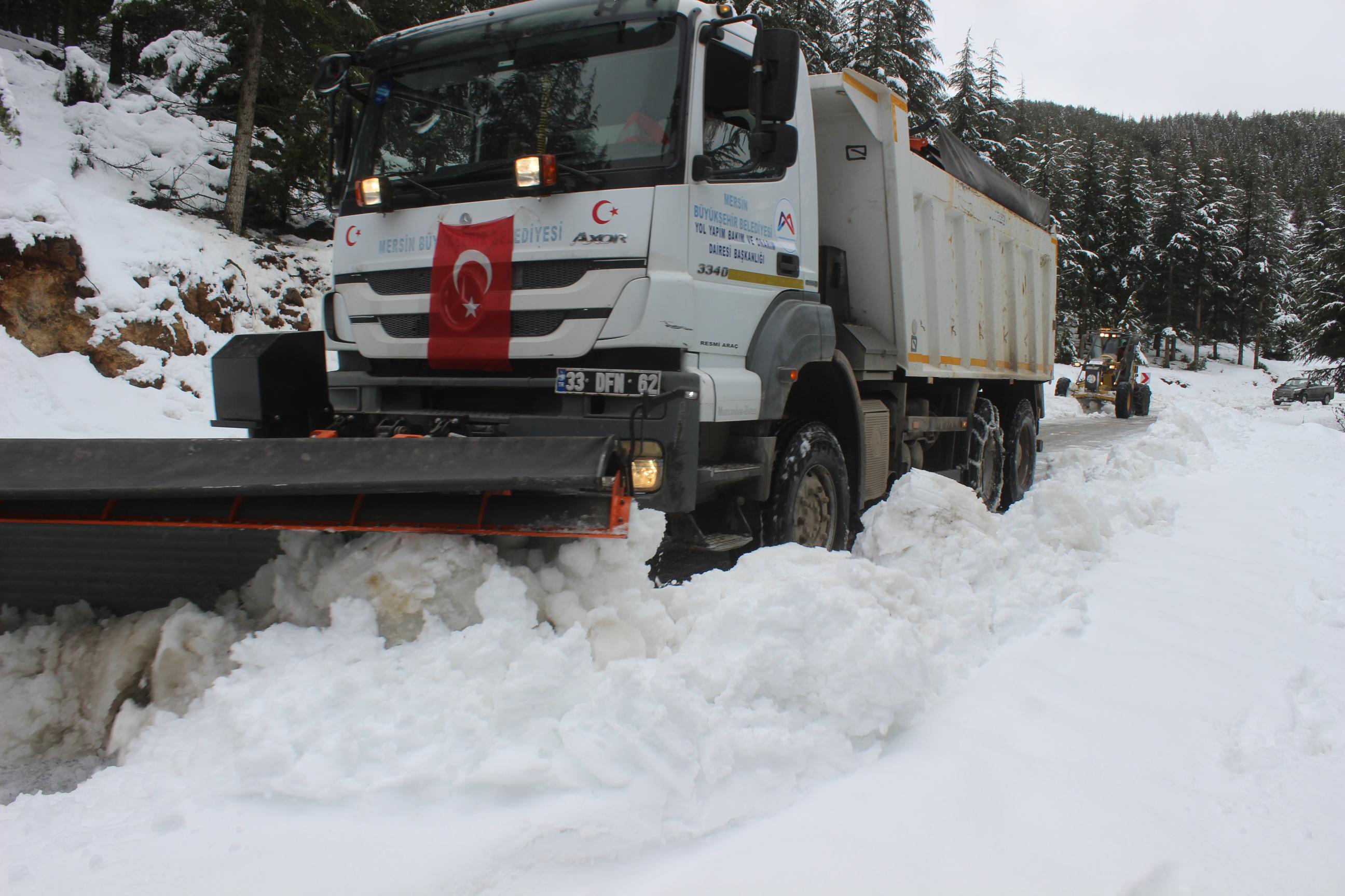 Özellikle yüksek kesimlerde yoğun kar yağışının hayatı olumsuz etkilememesi için özverili personelimiz ve ekipmanlarımızla etkin ve seri çalışmalar yürütüyoruz. Tuzlama ve küreme özelliğine sahip karla mücadele eden araç ve iş makineleriyle yollar ekiplerimiz tarafından ulaşıma açık tutuluyor. Kent genelinde daha iyi hizmet sunmak için olumsuz hava şartlarından kaynaklanan, yolların kapanması, ulaşımın aksaması gibi sorunları çözüyoruz. Mersin Büyükşehir Belediyemiz TEKSİN İletişim Koordinasyon ve Analiz Merkezi’ne iletilen başvuru ve tüm ihbarlara anında müdahale ediyor, İl Afet ve Acil Durum Müdürlüğü AFAD ve diğer paydaşlarla koordineli bir şekilde çalışmalar sürdürüyor.